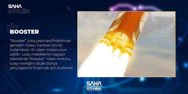 “Booster” çıkış yapması/fırlatılması gereken füzeyi hareket ettirip hızlandıran ilk roket motorunun adıdır. Uzay mekiklerini taşıyan roketlerde “booster” roket motoru, uzay mekiğini alçak dünya yörüngesine fırlatmak için kullanılır.